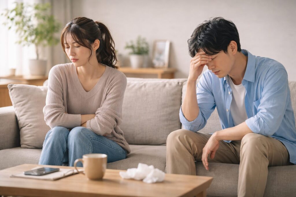 お互いに仕事を抱えているのに、気づけば夜遅くまで言い合ってしまい、寝不足のまま朝を迎えることがあります。